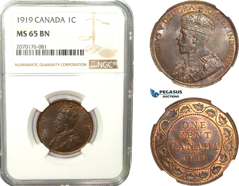 AB250, Canada, George V, 1 Cent 1919, NGC MS65BN