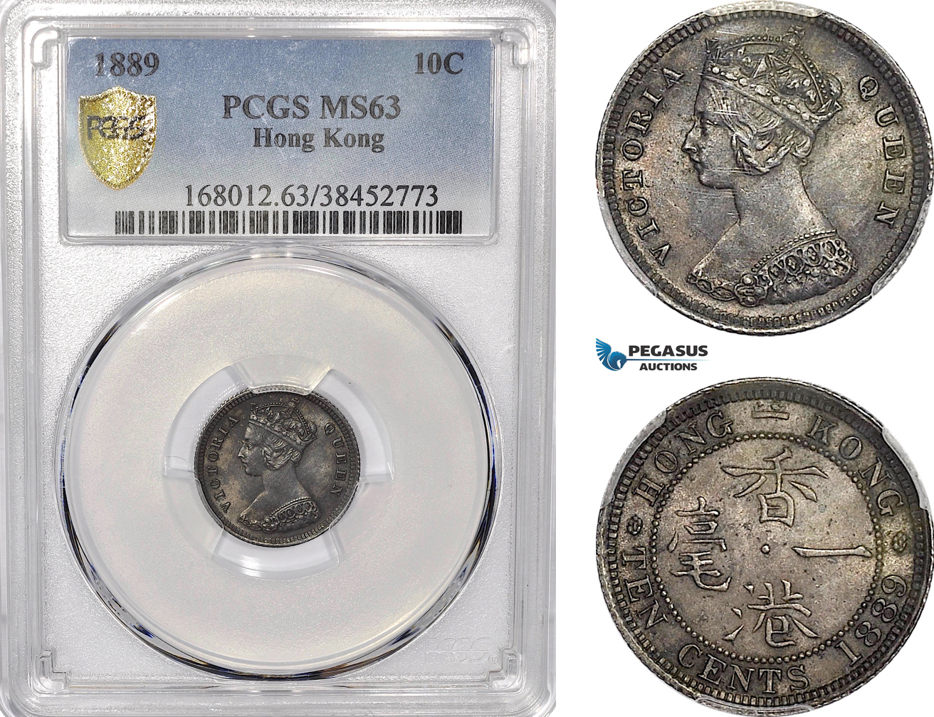 AE961, Hong Kong, Victoria, 10 Cents 1889, Silver, PCGS MS63