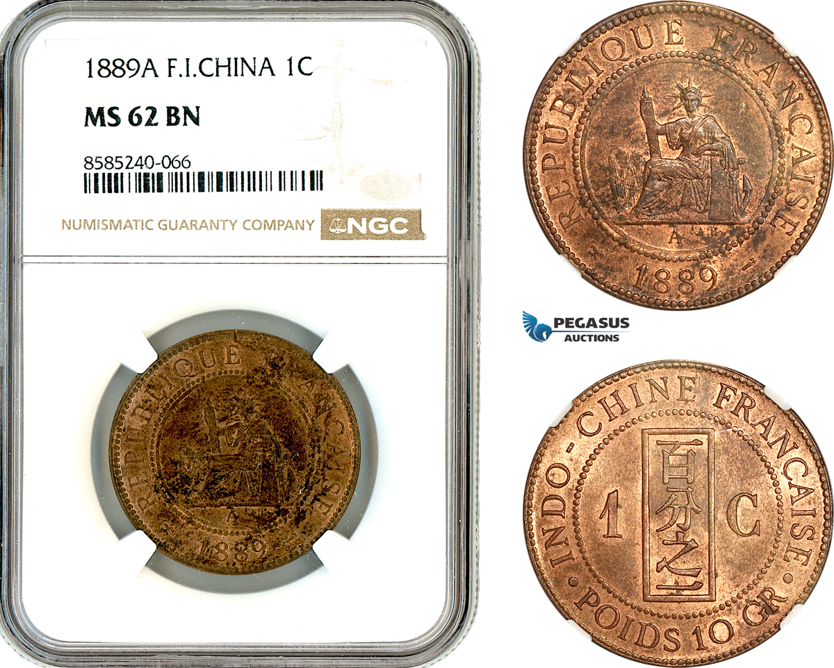AL325, French Indo-China, 1 Centime 1889 A, Paris Mint, NGC MS62BN