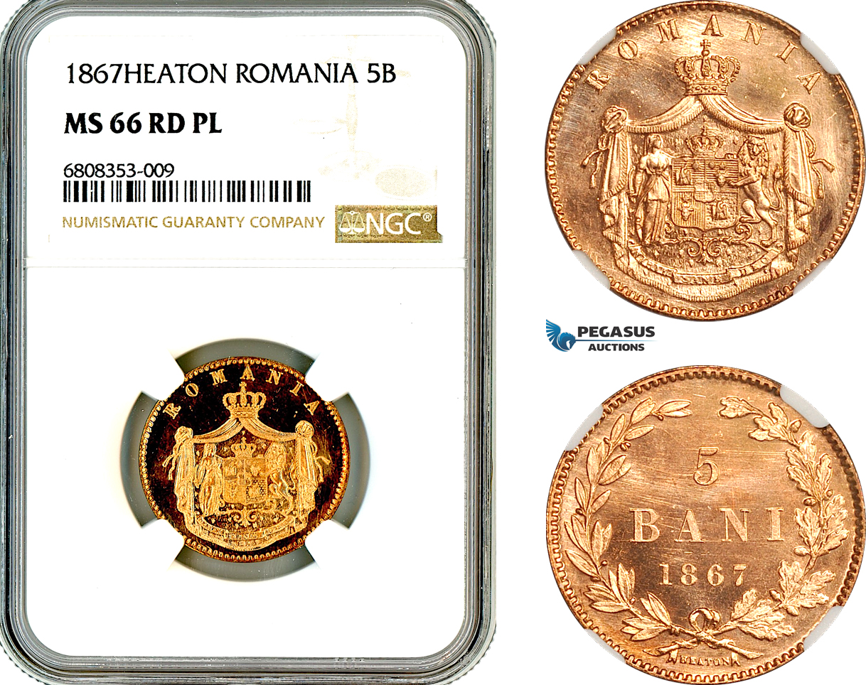 AL479, Romania, Carol I, 5 Bani 1867, Heaton Mint, NGC MS66RD PL