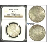 SOLDJ92, India, British, Victoria, Rupee 1886-B, Bombay, Silver, NGC MS64