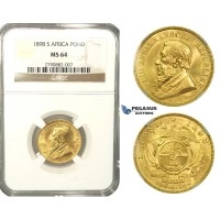 L62, South Africa (ZAR) Pond 1898, Gold, NGC MS64, Rare Grade!