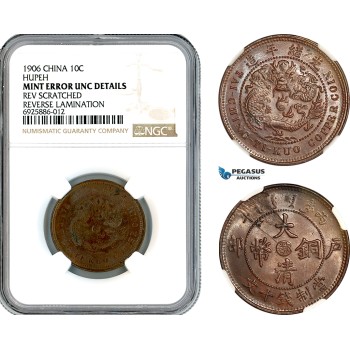 AK678, China, Hupeh, 10 Cash 1906, NGC Mint Error UNC Det