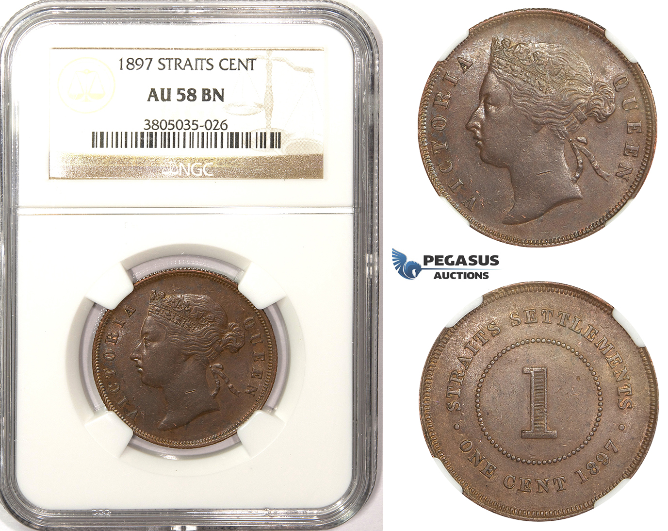 ZM363, Straits Settlements, Victoria, 1 Cent 1897, NGC AU58BN