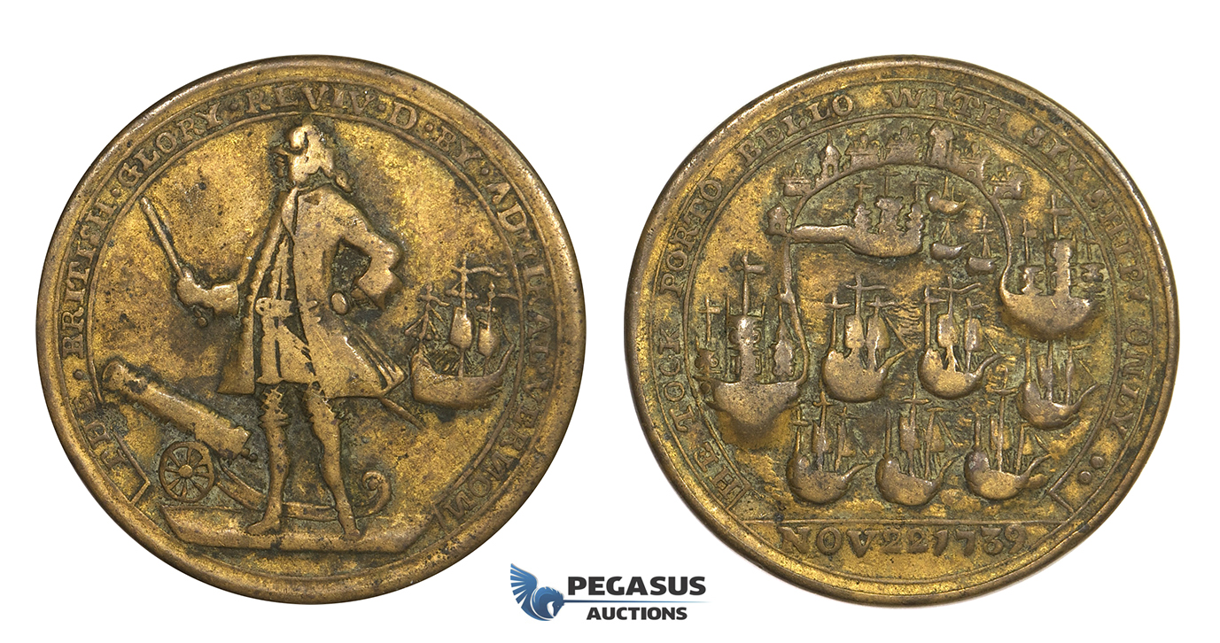 ZM670, Great Britain, Brass Medal 1739 (Ø40mm, 14.5g) Admiral Vernon, Capture of Portobello, VF