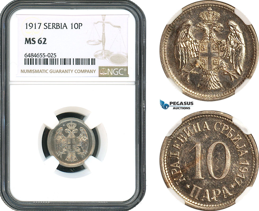 AH480, Serbia, Petar I, 10 Para 1917, NGC MS62