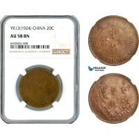 AK907, China, Empire, 20 Cash 1909, NGC AU55BN
